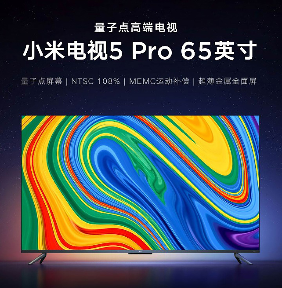2019年11月,小米電視5 Pro量子點電視發布。在畫質上,該款電視采用量子點顯示技術, NTSC色域覆蓋度高達108%,支持HDR 10+與畫質調教技術,并且搭載MEMC動態畫質補償技術。實現了同樣顏色更鮮艷,同樣鮮艷更自然的顯示效果,能夠看到更加純正的色彩,感受大千世界的無限魅力。